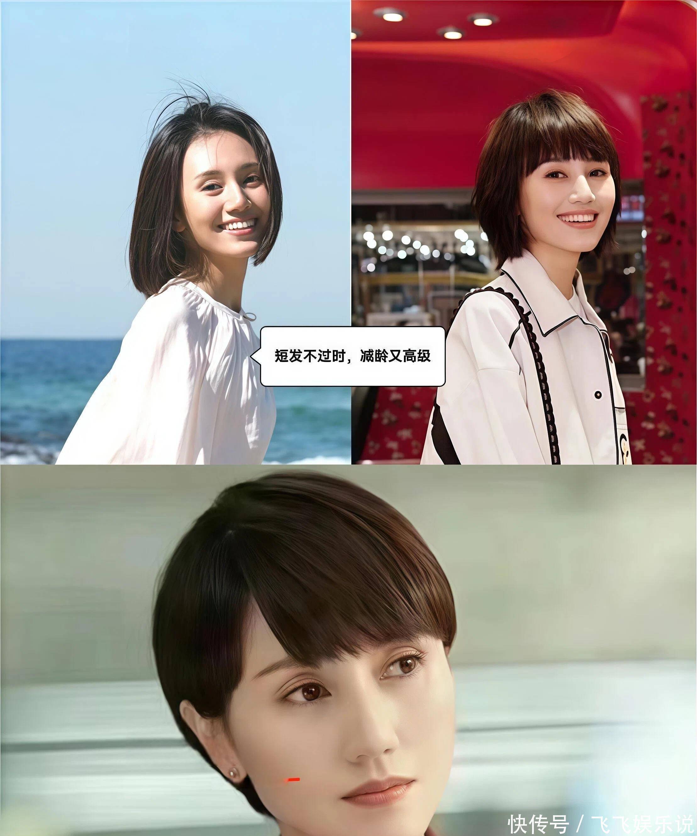 Part2.中年女人尝试短发,都有哪些诀窍?诀窍①选对短发的长度,不要盲目跟风对于普通女人来说,在挑选短发的时候,首先要关注长度。像袁泉这种下巴短而窄的长相,就很适合齐耳短发、齐下巴短发,稍微长一点,效果就会不太理想,如果面部比较饱满,曲线感明显的话,更推荐锁骨发。